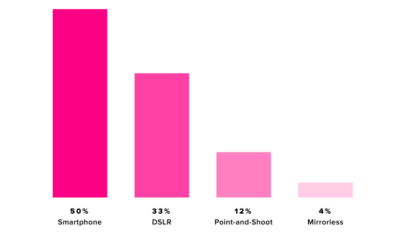 O relatório mostra que os smartphones foram mais uma vez os dispositivos escolhidos entre os usuários do site, passando de 48% em 2016 para 50% dos carregamentos em 2017. Enquanto isso, as câmeras DSLR pularam de 25% em 2016 para 33% neste ano. Como já era esperado, o uso do número de câmeras compactas caiu de 21% em 2016 para 12% neste ano. As câmeras mirrorless foram as únicas a se manterem estáveis, com apenas 4% de carregamentos em 2016 e 2017.