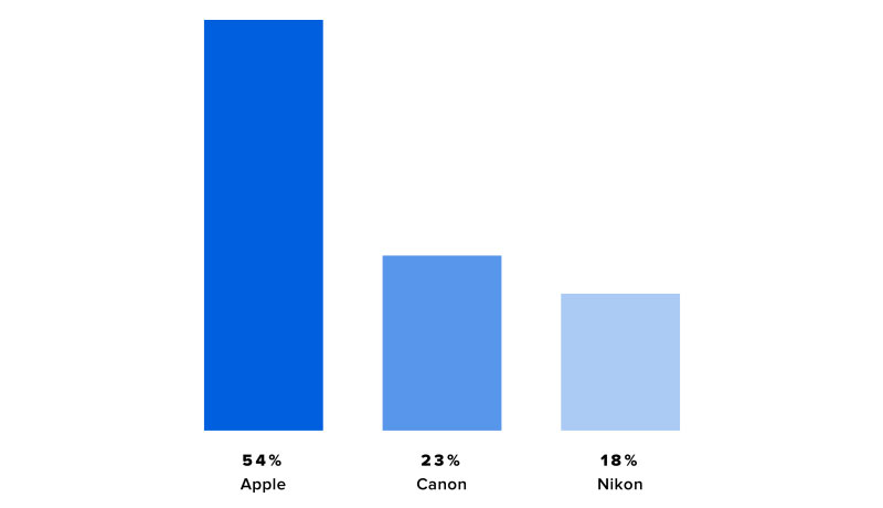 Olhando especificamente para as marcas, a Apple domina o relatório anual do Flickr em 2017, com o iPhone representando 54% dos 100 melhores dispositivos do ano. Segundo o site, 9 dos 10 melhores dispositivos eram modelos de iPhone; apenas a Canon 5D Mark III manchou esse registro, ficando em 9º lugar. A Canon, em geral, foi a segunda marca no Flickr este ano, representando 23% dos 100 melhores dispositivos. A Nikon ficou em 3º lugar com 18%.