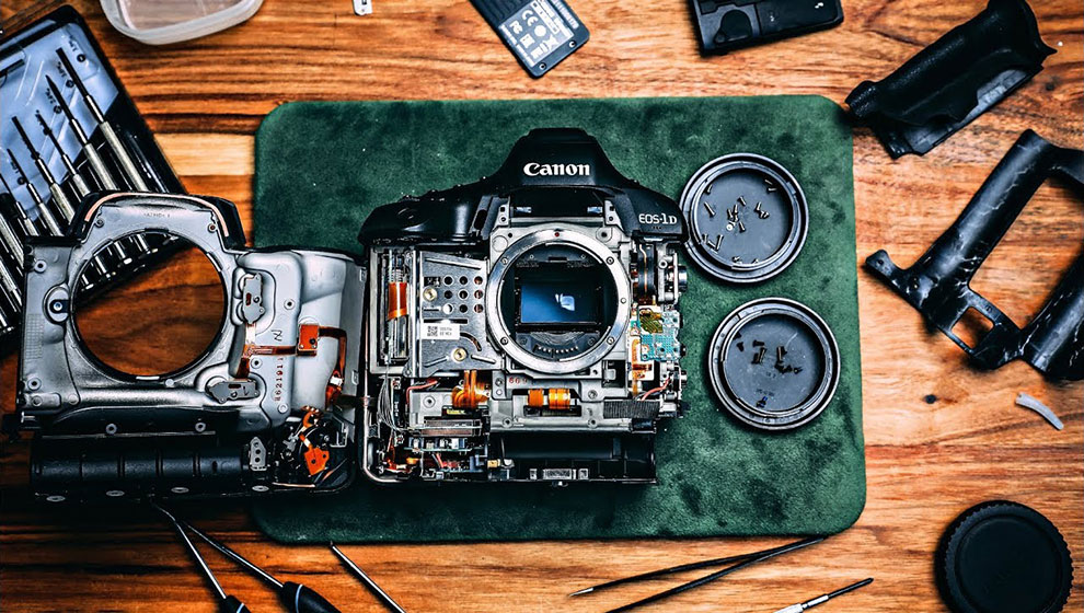 Fotógrafo desmonta câmera fotográfica Canon de R$ 30 mil