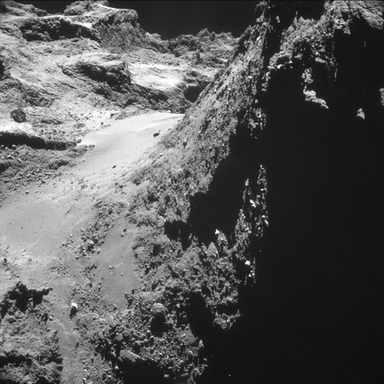 As fotos emanam uma estranha quietude na superfície rochosa, sem vida. As imagens revelam uma paisagem topológica altamente variada sobre a superfície do cometa. Em uma imagem, as falésias de Hathor são visíveis. Estes penhascos tem 900 metros de altura.
