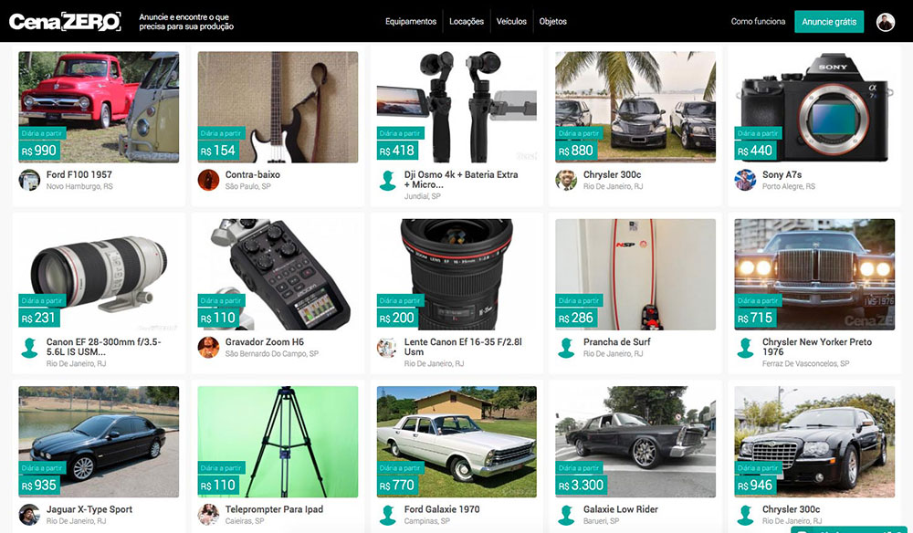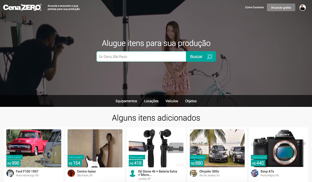 O Airbnb é um site que se tornou muito popular por possibilitar a comunicação entre turistas e donos de imóveis, facilitando achar um lugar dentro do orçamento. Com uma ideia semelhante, o site CenaZERO veio para facilitar a vida de produtores e fotógrafos que agora podem encontrar todos os itens necessários para a sua produção em um só lugar.