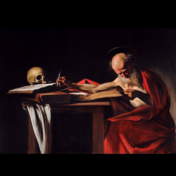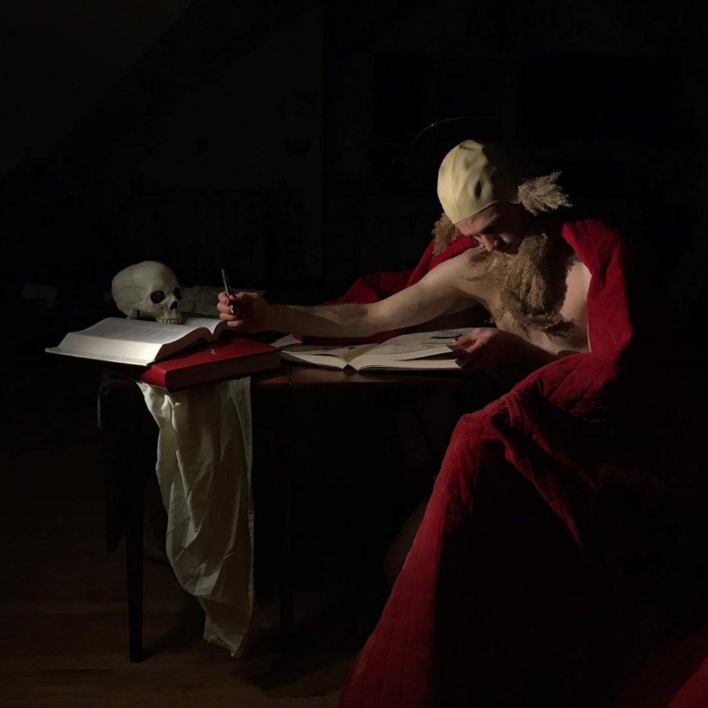 Recriação da pintura “Saint Jerome Writing”, de Caravaggio