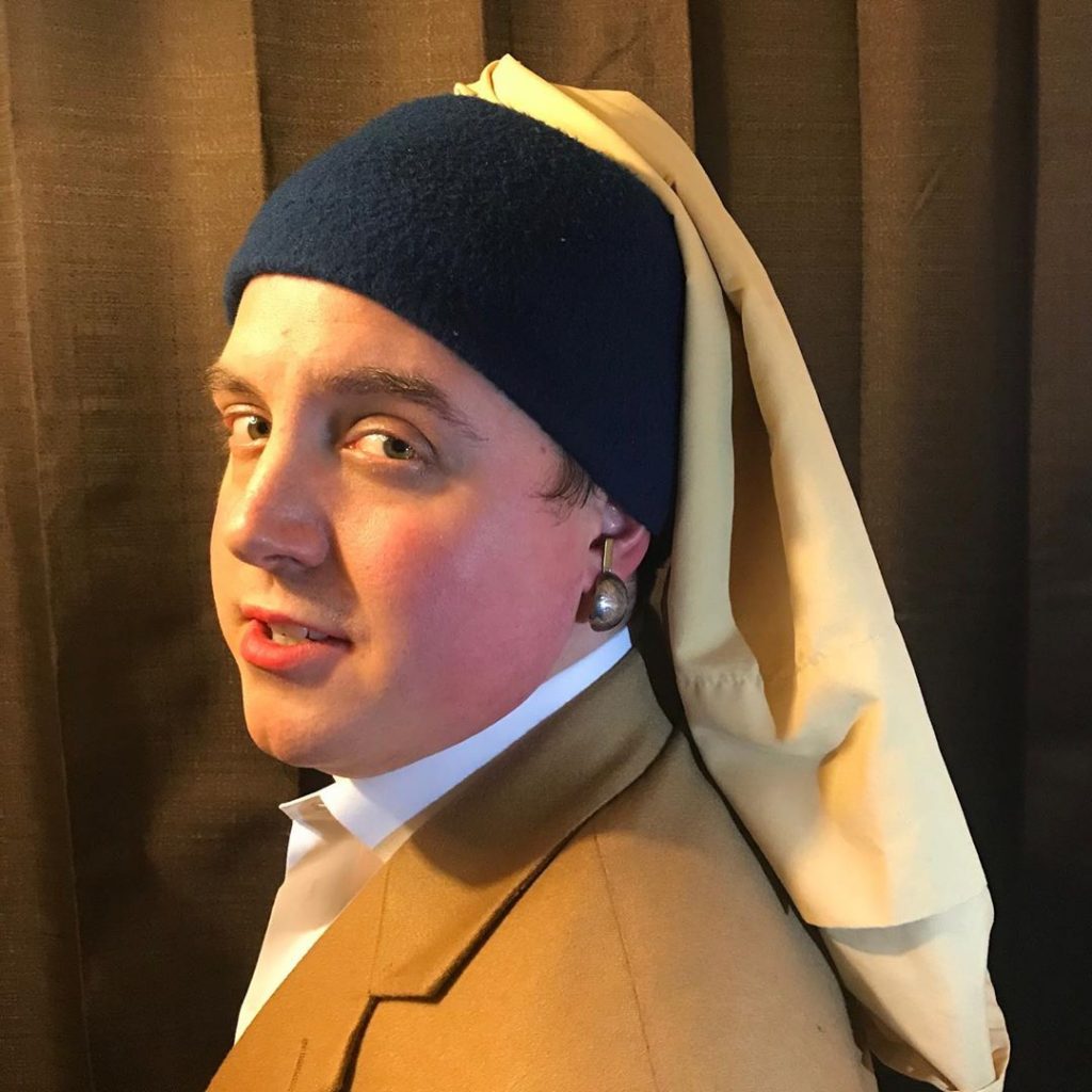 Recriação da pintura “Girl with a Pearl Earring”, de Johannes Vermeer.