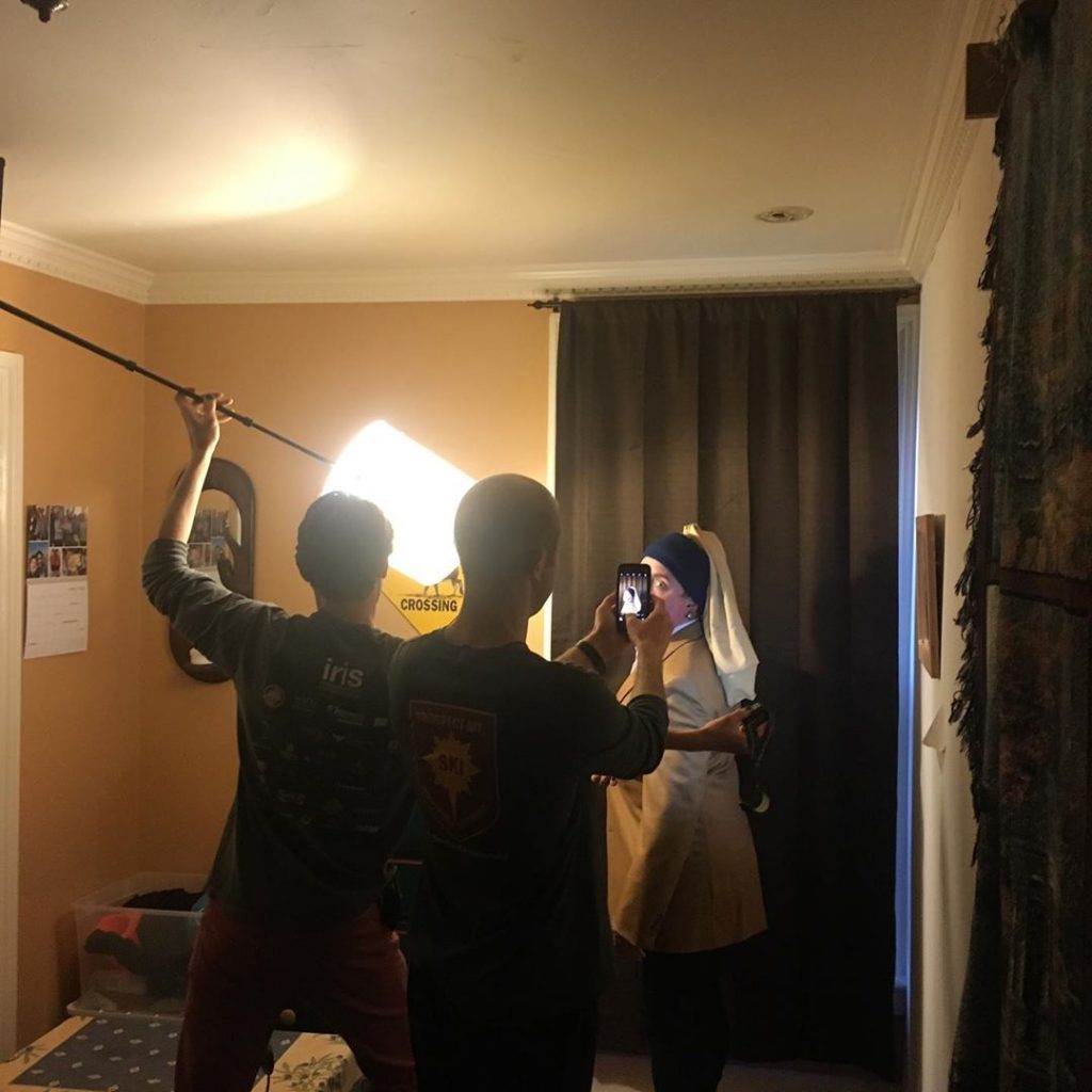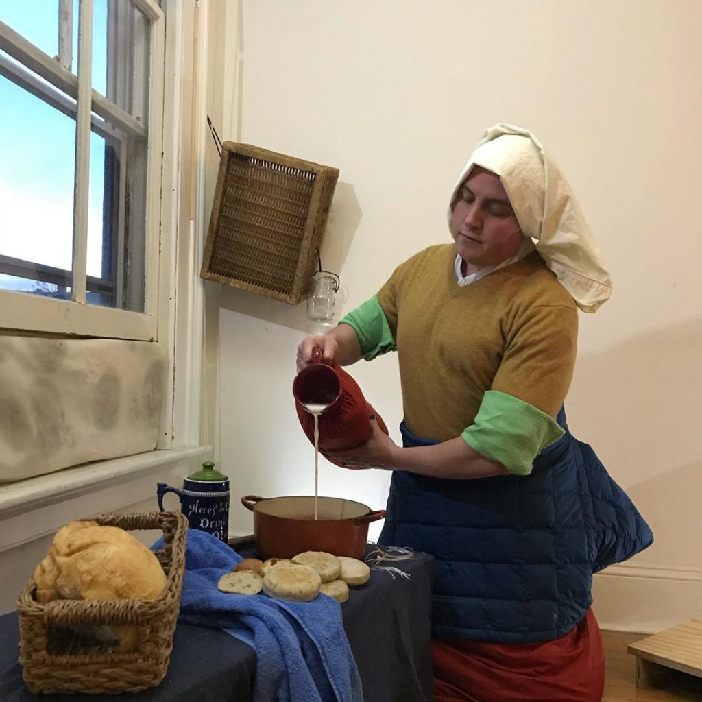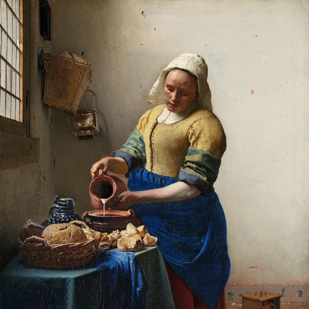 Recriação da pintura “The Milkmaid”, de Johannes Vermeer.