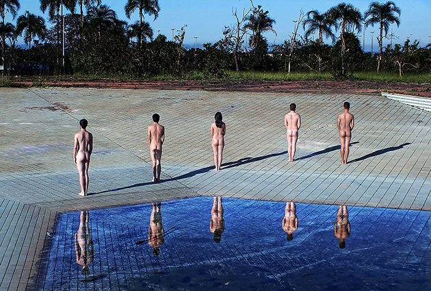 A partir daí, o fotógrafo paraense radicado na capital federal pesquisou a situação de outros espaços destinados à cultura em Brasília que se encontram da mesma forma e convocou voluntários dispostos a protestar de forma contundente: desfazendo-se daquilo com que mais nos preocupamos quando pretendemos ir a tais locais – as roupas – e dando assim início ao projeto “Abandonados”.