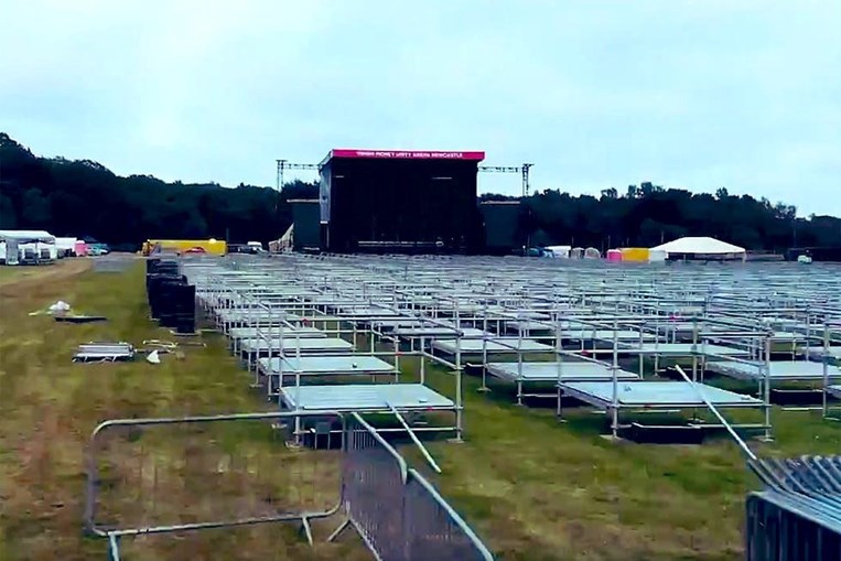Embora a imagem possa levantar suspeitas, a foto é real e autêntica. Na noite de 11 de agosto, cerca de 2.500 pessoas assistiram a um concerto de Sam Fender no Gosforth Park, em Newcastle, na Inglaterra. Este foi o primeiro espectáculo de uma série que acontecerá até meados de setembro. Para cumprir as medidas de distanciamento social foram instalados 500 camarotes, em plataformas elevadas, ao longo de 45 mil metros quadrados (com capacidade para 40 mil pessoas, antes da pandemia). As plataformas estavam separadas por dois metros e cada qual podia receber até cinco pessoas. De acordo com uma notícia da BBC, os espectadores tinham que utilizar máscara no caminho até à plataforma, ou quando fossem buscar bebidas, entre outras situações.