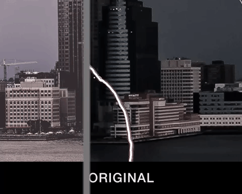 O problema foi trazer elementos originais de volta à cena: Piech teve que aprimorar o céu, o rio e o relâmpago 13,600% da imagem original e misturá-los na nova cena gigapixel. Esta etapa exigiu algumas tecnologias avançadas de processamento de imagem, incluindo um poderoso filtro de redução de ruído. Ele também precisou desenhar o raio e adicionar um halo em torno dele para imitar o original.
