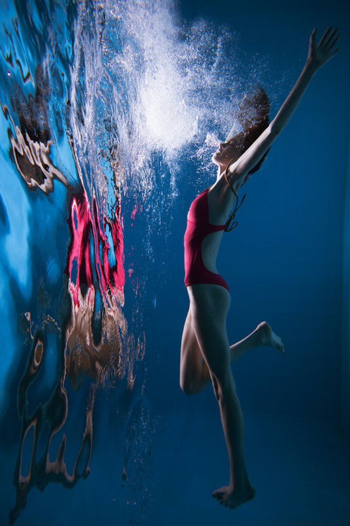 Parte importante da captação do reflexo dentro da água foi a iluminação. Cerutti contou com a forte luz solar, mas não dependeu apenas disso. Ele também utilizou iluminação acima d’água. Isso criou, além de um fortalecimento no reflexo, algumas sombras suaves que acompanham as modelos. Parece que elas estão pisando no chão. Confira as fotos: