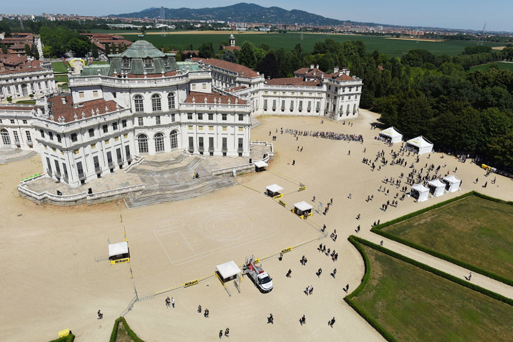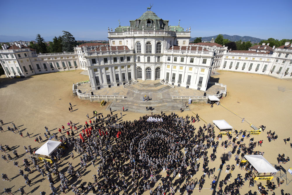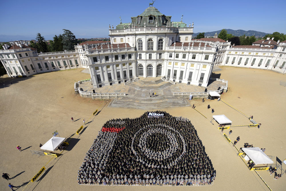 Quantos nikonzeiros são necessários para trocar uma objetiva? Bom, pra trocar uma objetiva eu não sei, mas se for para criar a maior câmera humana do mundo, está na ponta da língua. No último domingo, mais de mil pessoas se reuniram em frente ao Palácio de caça de Stupinigi para reproduzir uma câmera Nikon gigante, alinhando-se lado a lado. O projeto foi criado pela distribuidora italiana Nital em colaboração com a Media Italia e faz parte das celebrações do centésimo aniversário da Nikon.