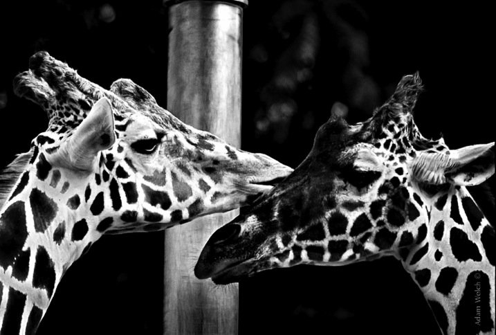 Nesta imagem das girafas, a original com cores era uma imagem comum, com nada muito importante acontecendo. Tirando as cores e trabalhando mais no contraste foi possível trazer a tona um sentimento de carinho entre os animais.